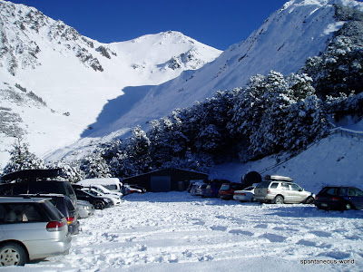 ski fields, en estos pequeños paraisos no existen máquinas que repasen las "pistas" por la noche. En una estacion hay unas 3 o 4 cuerdas seguidas la una detras de la otra que llevan al esquiador hasta arriba del todo (en algunos casos). Y de ahi, uno es libre de ir donde quiera, de cargar los esquís al hombro e ir un poco más lejos o de contentarse con alguna que otra travesia y explorar nuevas pistas.