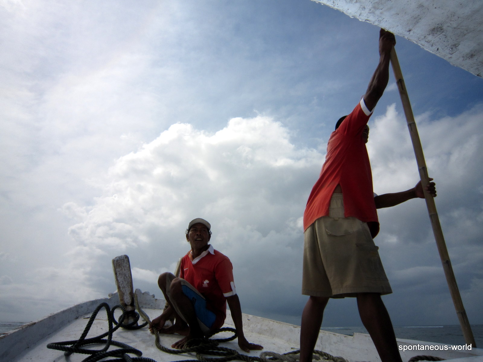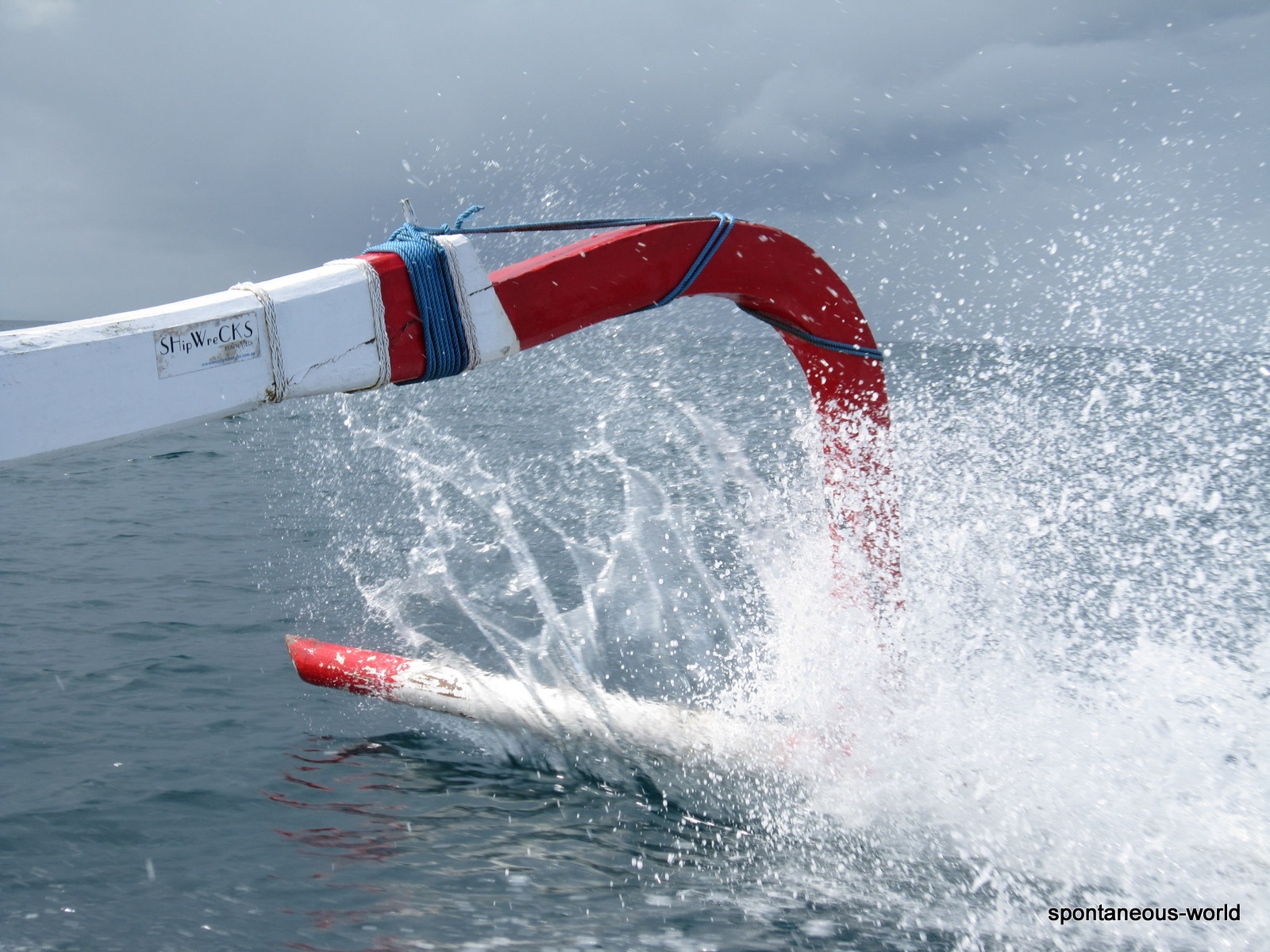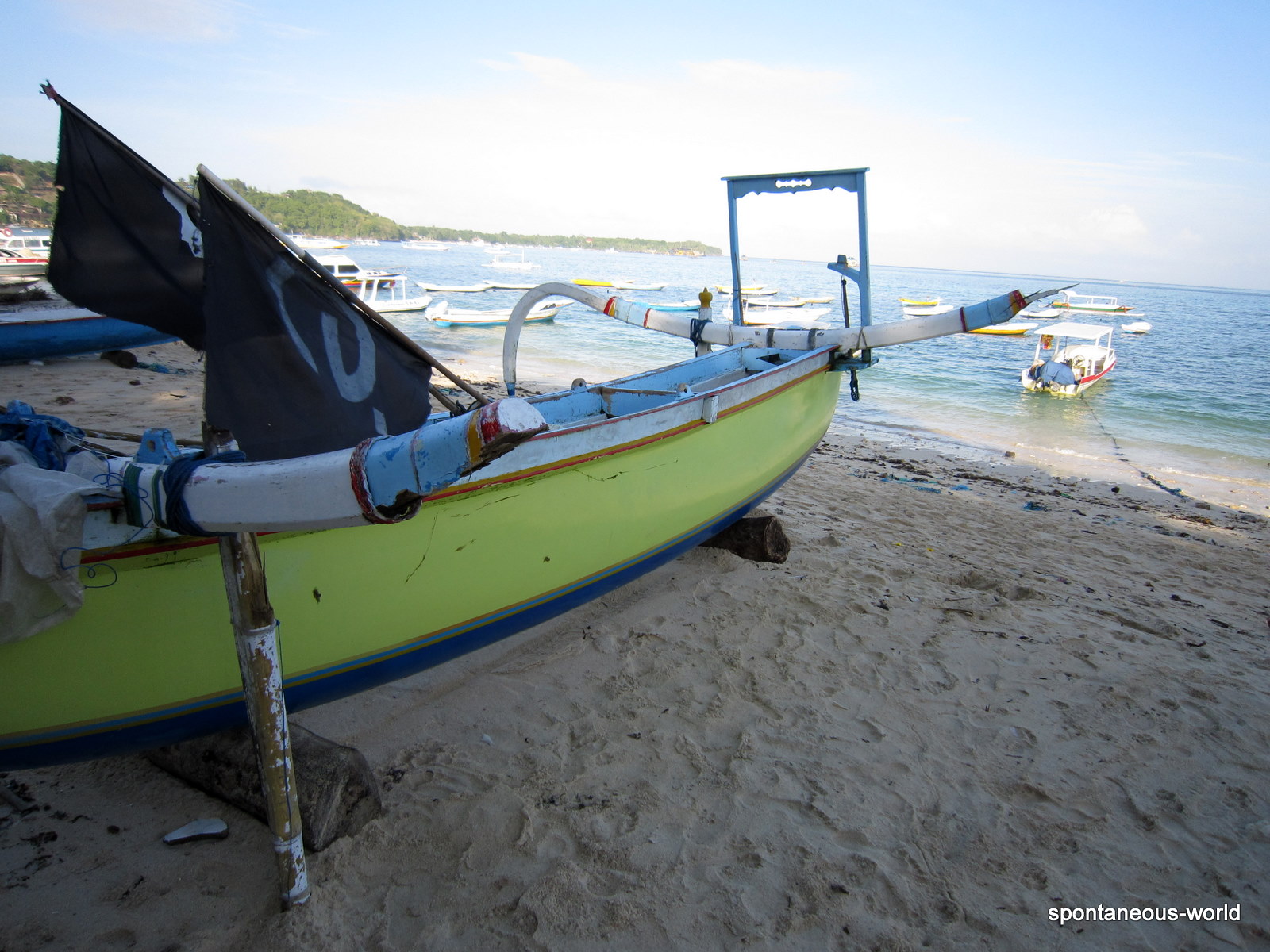 Todos los barcos traicionales Balineses tienen una especie de "brazos" flotantes exteriores al barco....y cuando hay bastante mar deben ayudar a flotar, pero tambien a empapar a los viajeros !