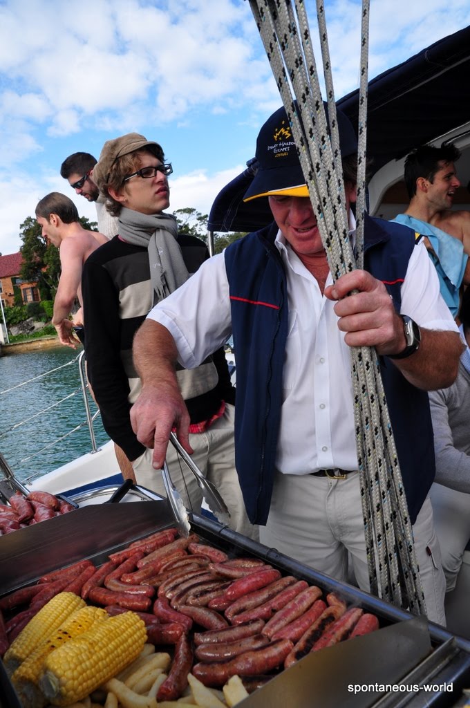 Notre excellent skipper prépare les saussisses au BBQ