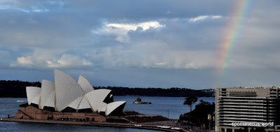 De retour sur terre, la fête a continué sur le balcon du YHA d'abord avec un magnifique arc-en-ciel sur l'Opéra House,