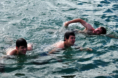 pendant que les plus courageux plongent et testent l'eau australienne sans combi !