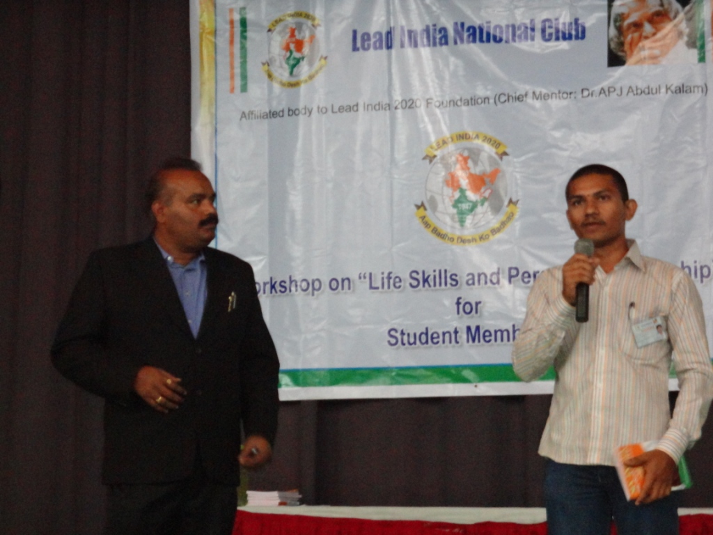 Resource Persons: Prof. N.B. Sudershan Acharya-Founder Lead India, Mr. J.Jagan Mohan, Treasurer-Lead India, Prabhakar Rao Kotapati-S&P Capital IQ, Flt. Lt. Sridhar – VP Operations at Digital Campus Services Pvt Ltd , Prof. Viswanadham -Yuva Bharathi, Dr. Nagesh-Hypnotist, Mr. Syed Rafi- Motivator & Trainer, Mr. Saiprasad-Deloitt, Mr.Chethan-RJ Radio Citi, Mr.Naresh-Lead India Master Trainer & Ms.Vijaya, Btech Student JNTU.