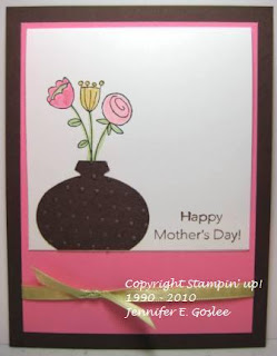 Mother's Day is quickly approaching, peeps! Have you got your card(s)? I've been playing in my craft room this afternoon and came up with several different designs. I'm crunched for time right now, so won't go into details on each card. If you have questions, please post a comment and I'll get back with you as quickly as possible.