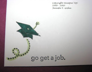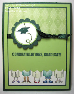 This is the card and matching envelope that I made for her. I LOVE the new "Go, Graduate" stamp set. I used Handsome Hunter and Certainly Celery cardstock with coordinating Designer Series Paper in Certainly Celery. That was about as close as I could get to the school colors based on what I saw on their website.