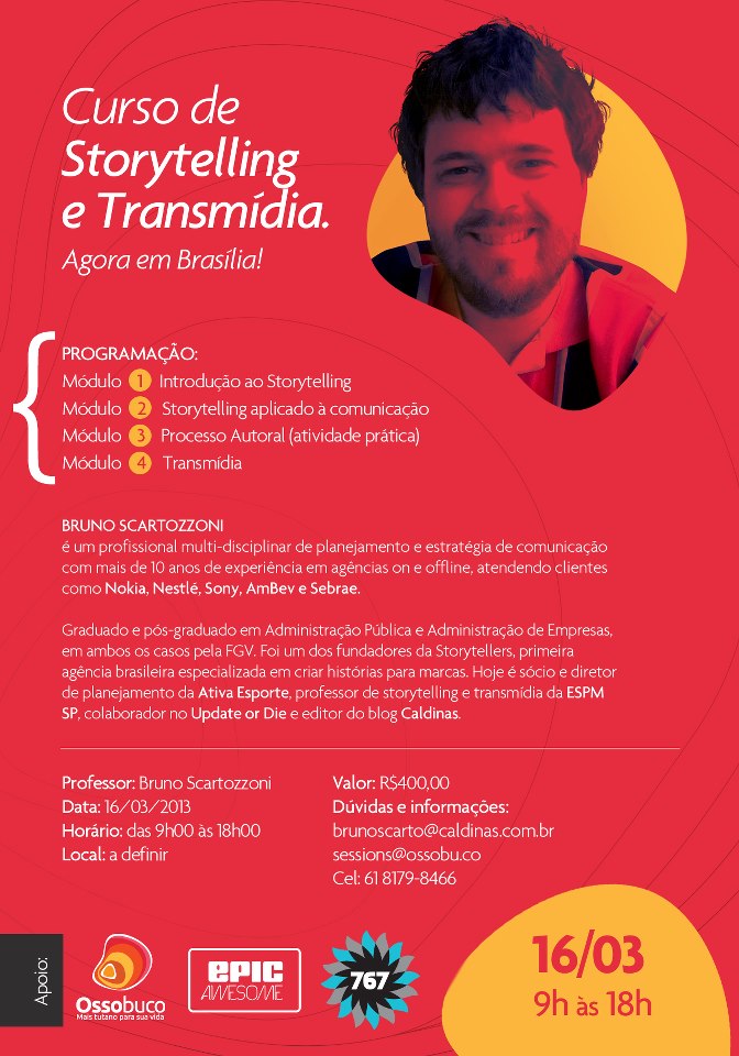 Em 16 de março estarei na cidade para ministrar o curso sobre Storytelling e Transmídia em parceria com o