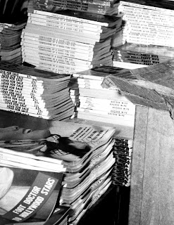 The entire brouhaha was started by a letter to City Hall from a Portland citizen who was concerned about the "salacious magazines" and literature being made available to local students in the bookshops of the area. Perhaps some of the other visible titles below Mr. Mack's bent knee are those in question? With titles like "Confessions of a Good Time Girl," "Party Wife," "Pleasure After Hours," "Excess Wife," and "Confessions of a Shakedown Dame," it is hard to imagine these publications wouldn't raise an eyebrow or two. On the other hand, they probably weren't talking about the nearby magazine with the banner headline, "FOOT DOCTOR TO THE STARS!"