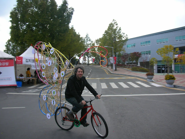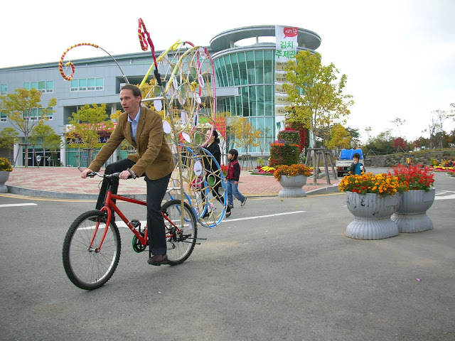 Feeling a tad overwhelmed at the wonder that is kimchi, Scott and I retreated to the parking lot to ride our butterflycles.