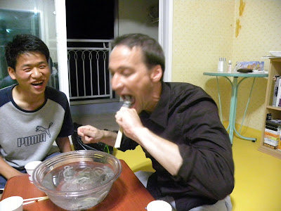5) Shove one chopstick up into the breather hole on the back of his head and wrestle with his tentacles in order to neatly wrap them around both utensils.