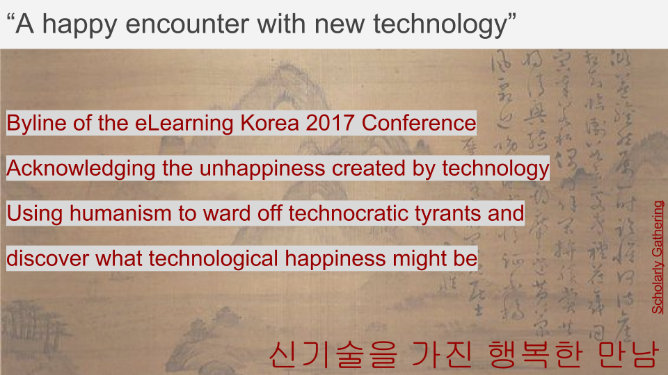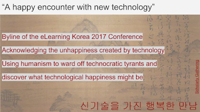 The organisers of eLearning Korea 2017 have invited me to give a talk on the future of education and educational technology. The conference has a curious byline  “a happy encounter with new technology”, and it's to this byline I target the presentation.
