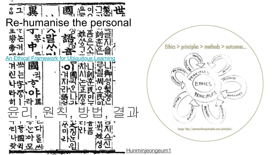 As the quotes from the works selected here point out, there have been people calling for a rehumanised ethos all through our modern era, and proposing ways to go about it. Perhaps rehumanising need only be a personal project. My own is ongoing, in a project I currently call, An Ethical Framework for Ubiquitous Learning. My personal goal is to continuously seek out and build in questioning, philosophy, ethics, anthropology, history, theory, art, storytelling, criticism and debate, and to use these discoveries to find kindred spirits, to help refine meaning and purpose, and expand human-ness in the relentlessly technocratic world we live and work in.