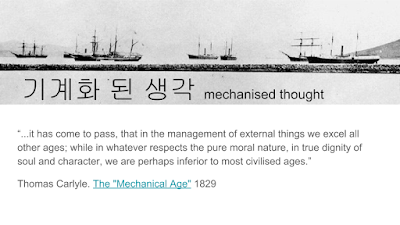 In 1829, toward the end of what we today call “The Industrial Revolution” and what we might say was the dawning of Modernism, the Scottish philosopher Thomas Carlyle published his essay, The "Mechanical Age".