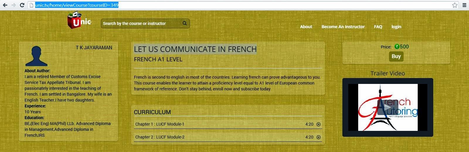 unic.tv. The onetime subscription of INR 500 is kept deliberately low so that all students can afford the course. Once subscribed, the learner can learn at his/her own pace while online.