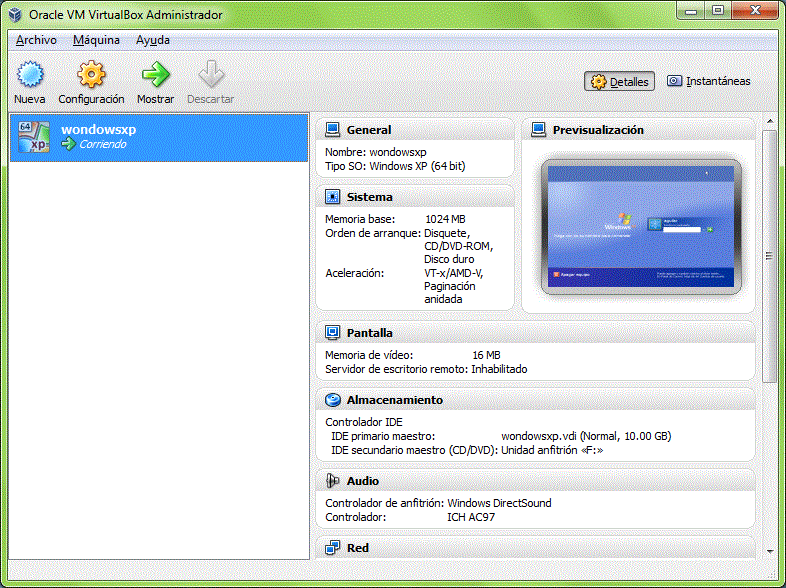En esta imagen que les muestro, instale el winXP en mi maquina virtual, pero mi sistema operativo princial es el Win7.