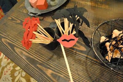 I set out nose glasses & dress up hats for the kids to play with. Along with these lips and mustaches that my daughter helped me make. So fun!
