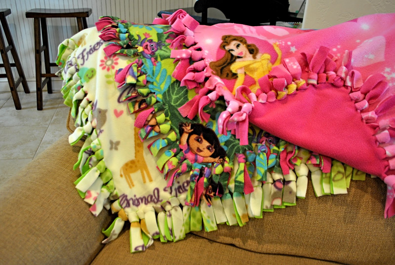(For kids' blankets, Kaylee used 1.5 yards instead of 2.