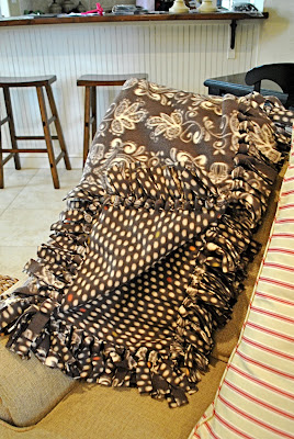 1. Buy 2 yards of 2 colors of coordinating fleece.