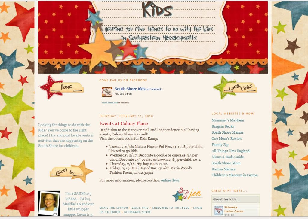 > Writer...not sure if that would make a difference. Blog is athttp://www.southshorekids.blogspot.com/