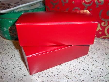 Treat boxes are pretty easy to find these days, I get mine from Not Just Paper in Durham, NC (red ones), but you can also find them in Michael's or AC Moore's (usually white ones). I use 1/2 pound boxes lined with wax paper.