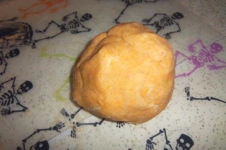 Mine was very crumbly in the mixing bowl, so I transferred it to a rolling mat and kneaded it together until it formed a solid ball of dough.