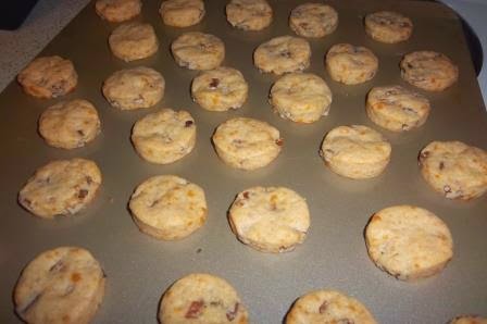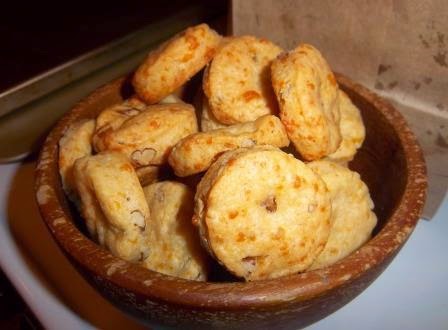 Last weekend I helped celebrate my friend Dana's birthday with a mini feast of Cajun goodness. My contribution to the eatin's were these little treats. I really wanted to make cheese straws but much to my chagrin, I found I didn't have a cookie press readily on hand so went the biscuit cutter route.