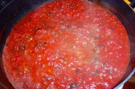 In a large skillet over medium-high heat, cook onion and garlic in olive oil until onions are translucent. Mix in tomatoes and Kalamata olives, drop temperature to medium-low.