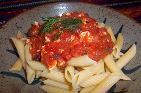 With the weather getting cooler, I keep getting cravings for pasta so in keeping with my latest exploration of "exotic" flavors, I bring you a tasty Greek-inspired pasta dish.