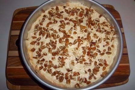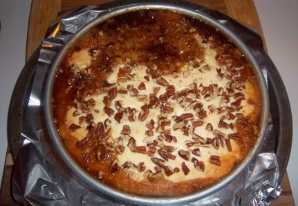 Pour the sugared concoction in the bottom of a 9" cake pan (