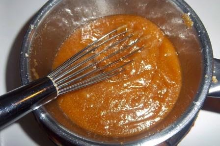 For the topping, melt butter over medium high heat in a small saucepan. Add in the brown sugar and rum. Continue heating until sugar melts.
