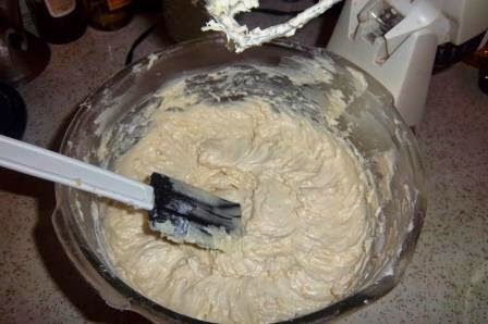 Cream the softened butter, takes about a minute. Gradually beat in the sugar. Then add the eggs one at a time, incorporating each well. Add in the vanilla.