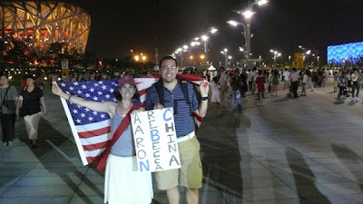 BEIJING, Aug. 23 -- Eager to share his excitement at being in the middle of Beijing's Olympic splendor, Aaron Price pressed toward the railing of the open-air set of NBC's "Today" show here Friday night, hoping the live broadcast would beam his face and his "Aaron, Rebecca, China" sign to friends and family back in New Jersey.
