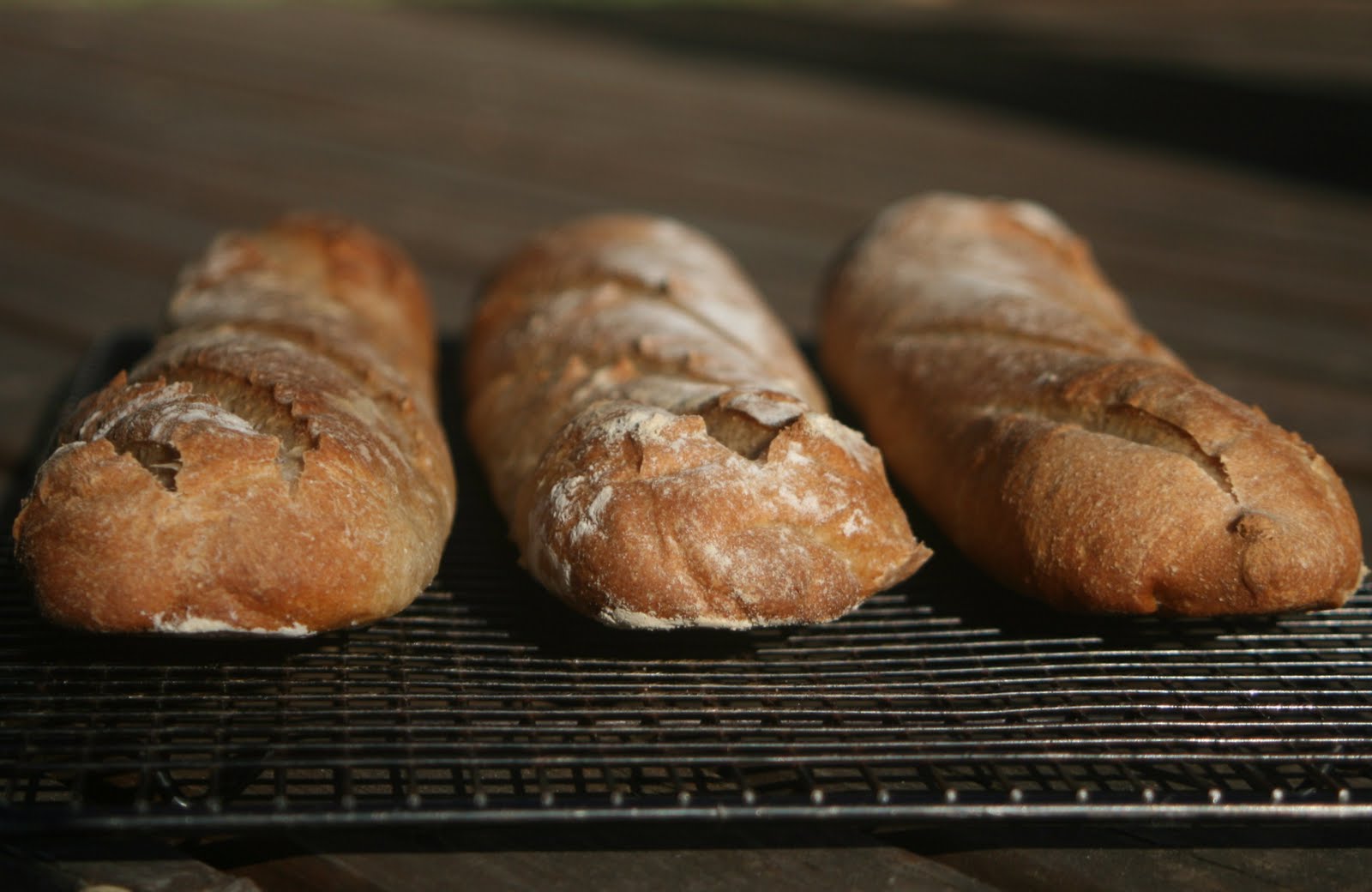 I decided to go risky by doubling the batch and ended up with six beautiful baguettes, three of which we promptly devoured at dinner along with the delicious BBQ'd pork that Rachel made. I doubt the other three loaves will live to see another sunset. The dough called for sifted whole wheat flour and a happy bi-product is a little bit of wheat bran that will go into my attempt on #20, Multigrain Bread Extraordinaire. Stay tuned.