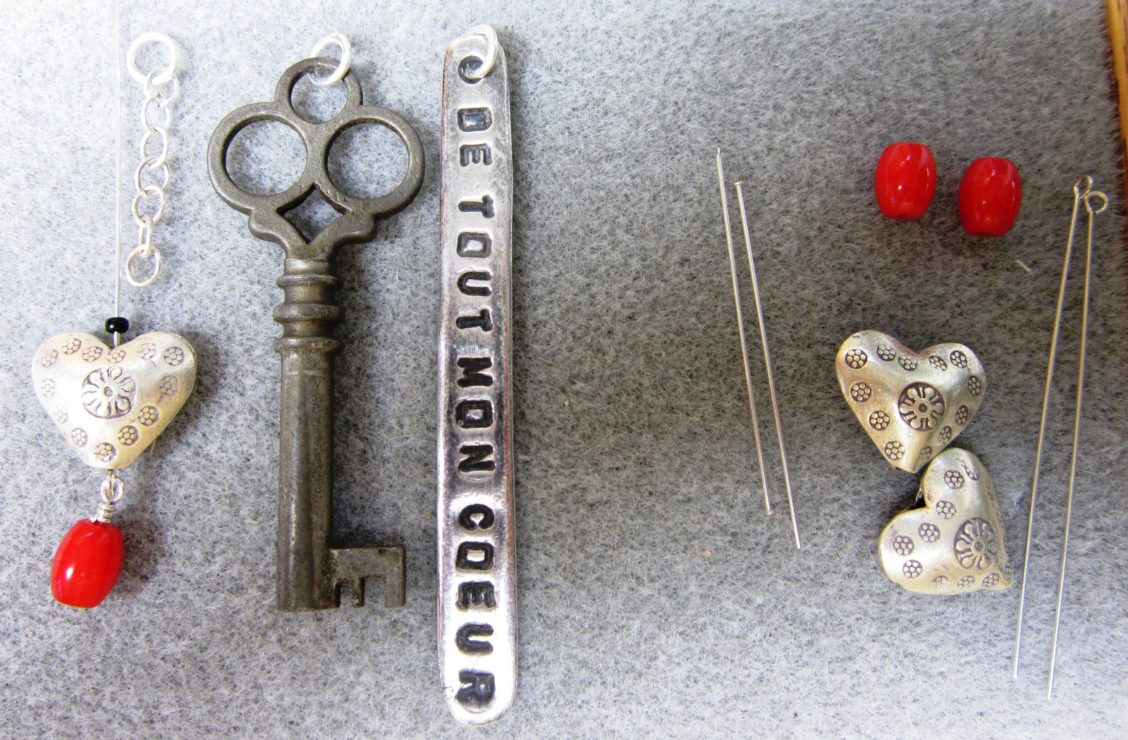 After I had everything assembled, I began patinating individual silver pieces. I never used to like using liver of sulfur. I always preferred bright and shiny silver to artificially blackened pieces. But blackening, and then cleaning, the silver really does add visual interest. And in the case of the De Tout Mon Coeur tag, it was necessary to make the letters really pop and more easy to see.