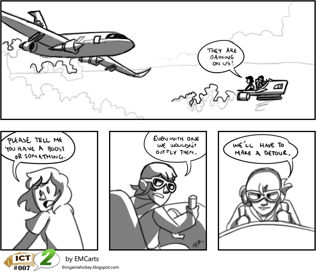 Here's my part. Since it doesn't give a lot of room for good enough reference, I uploaded sketches for the airboat thing and our yet unnamed grumpy pilot.