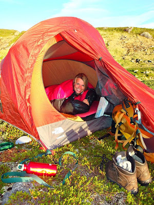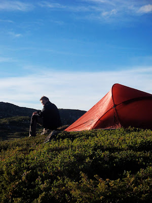 Vi gikk et stykke innomver før vi slo leir, og gikk videre med hunden. Vi la oss ved et vann hvor det vaket hele kvelden - neste gang har vi med fiskeutstyr...