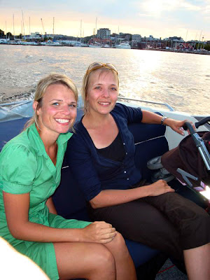 Så fik vi endelig besøg fra Danmark. Danskene var her i 400 år, men etter det har de nesten ikke vist seg... Familien Winther kom over Skagerak fra sommerhuset i Blokhus for noen dager. Vi fikk vist dem Kristiansand, tatt en tur i båten og spist og drukket godt. Kirstine var blitt en stor pige, i godt humør og veldig sjarmerende.