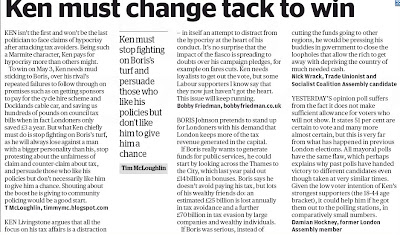 My letter has been published in today's Evening Standard about what Ken Livingstone can do to win: