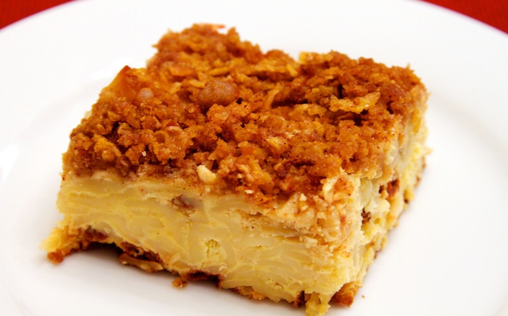 An excerpt from this post: "Noodle kugel is an Ashkenazi Jewish casserole usually served as a side dish or a dessert. It is often prepared for the Sabbath and holidays. Kugels were originally savory cakes made with flour. Eight hundred years ago, the flour was replaced with noodles or farfel; dairy products were added to create a custard-like consistency. More recent versions may contain raisins and cinnamon."