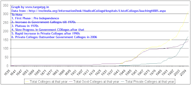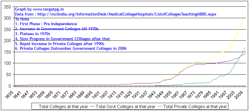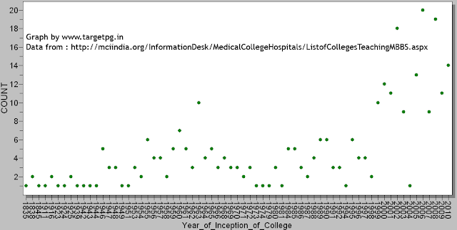 முதலில், ஒவ்வொரு வருடமும் எத்தனை மருத்துவக்கல்லூரிகள் துவக்கப்பட்டுள்ளன என்று பார்ப்போம்