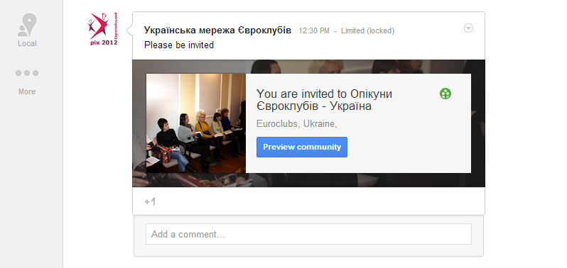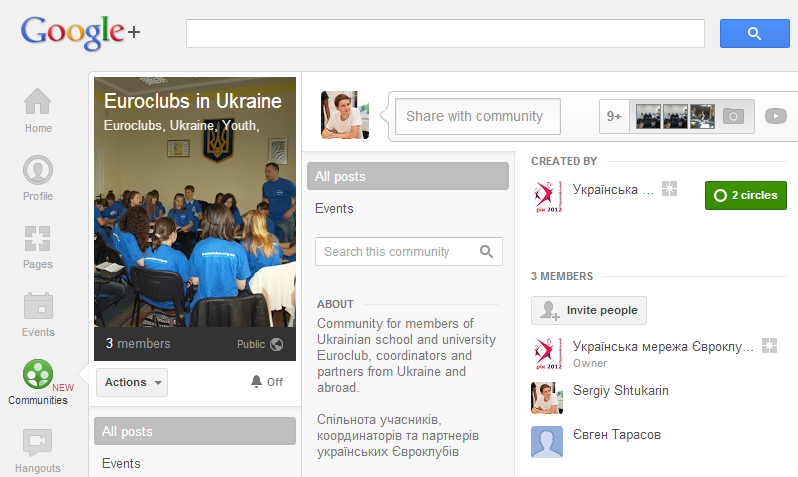 Запрошуємо опікунів Євроклубів, учасників та друзів, а також випускниківЄвроклубів долучитись до відповідних спільнот, створених за допомогою інноваційного інструменту від Гугл - Google+ Communities!