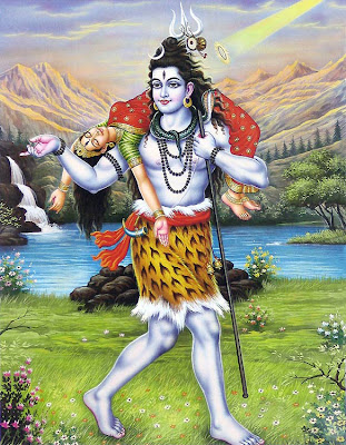 भगवान शिव ने उन्मत की भांति सती के जले हिए शरीर को कंधे पर रख लिया। वे