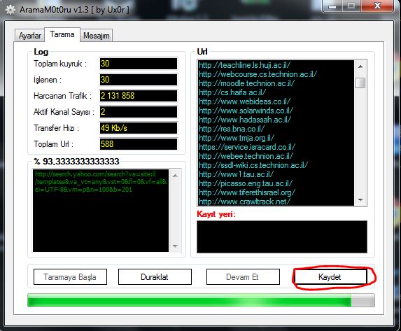 When the search ends, hit Kaydet and save it as a text file. It is important to do so because you are going to need it later on.