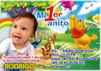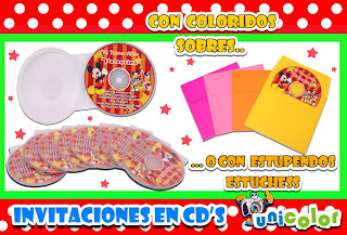 invitaciones personalizados en cd, en el cual están impresas el nombre, la foto del niño, la