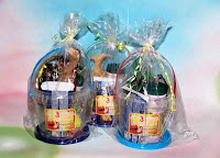 de celofan con su propia etiketa y un moñito curly.