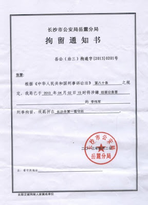 4月2日,李伟军、张岳云被长沙岳麓区公安局以“涉嫌妨碍公务罪”刑事拘留,羁押在长沙市第一看守所。从3月21日至今家属都没有见过这两个人面。