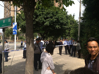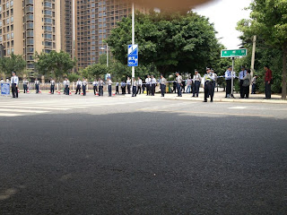福建高院审理福清纪委爆炸案是借福州中院开庭,法庭外戒备森严,很多福州冤民到场声援。(见图片)