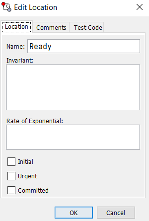 3) I have a network of timed automata. There are synchronizations which have been converted into broadcast synchronizations for SMC. However, it looks like I cannot have locations which do not have delay specified in there. Every time I do not declare a location as urgent, committed or without a delay, I am getting this error - Unspecified delay due to missing invariant and exponential rate on Project. This is also the case when I tried the model that you have shared above in your reply message, where it says there is no invariant in Start location.