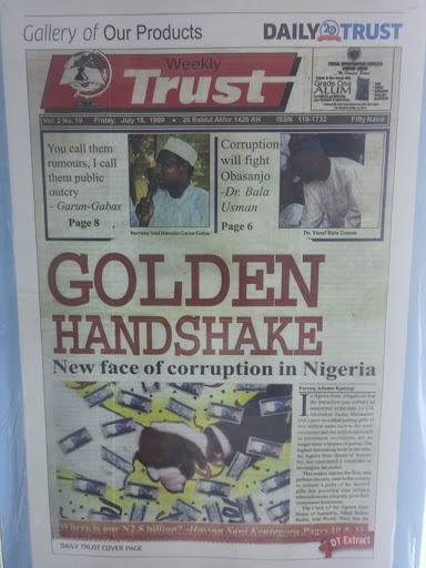 The screenshot also reminded me of the misplaced confidence many people had invested in Obasanjo to confront corruption, and it was captured by a headline we promoted on the front page: “Corruption will fight Obasanjo—Dr. Bala Usman.”