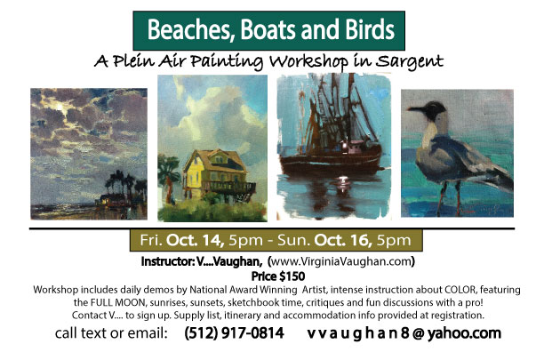 I hope you can join me for one of these workshops to sharpen your skills, or just try something new! OCTOBER promises cooler days, coastal birds and clouds and coffee-shop sketch classes! Have some fun before the crazy holiday season. My workshops are intense, and intensely fun. I keep them small, so respond soon for supply lists and "housing" info.