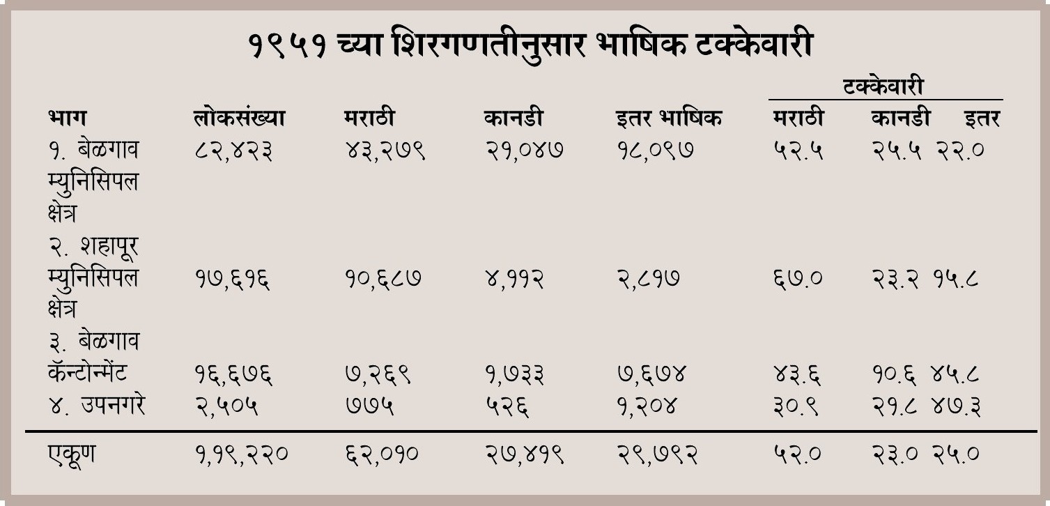 मराठी भाषिक नागरिकांची संख्या कन्नड भाषिकांपेक्षा कितीतरी अधिक आहे.