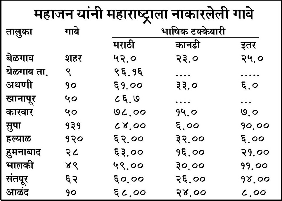 निपाणी, खानापूर, कारवार, बीदर आणि भालकीसह ८६५ गावांचा संपूर्ण मराठमोळा